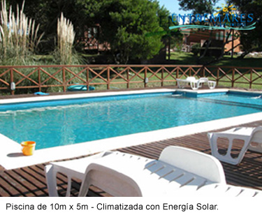 - Piscina climatizada (*) con solarium, sector para niños, reposeras de PVC y toallones.